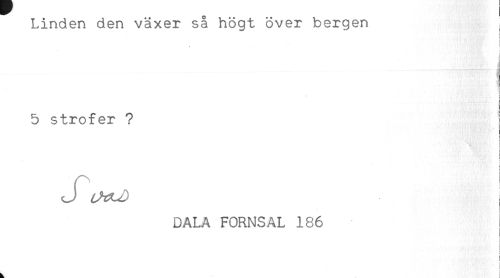 //// Linden den växer så högt över bergen //// 5 strofer ? //// < . * //// i //// ! //// ! //// DALA FORNSAL 186 //// < //// ! //// ) ////