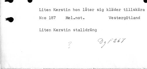 //// Liten Kerstin hon låter sig kläder tillskära //// < //// ' N:o 187 Mel. no t. Vestergötland //// j //// Liten Kerstin stalldräng //// . //// - ////