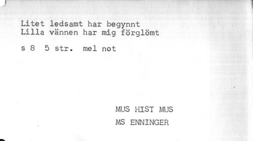 //// Litet ledsamt har begynnt //// Lilla vännen har mig förglömt //// s 8 5 str. mel not //// MUS HIST MUS //// MS ENNINGER ////