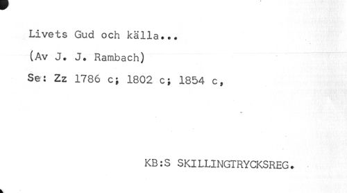 //// Livets Gud och källa... //// (Av J. J. Rambach) //// Se: Zz 1786 c; 1802 c; 1854 c, //// KB:S SKILLINGTRYCKSREG. ////