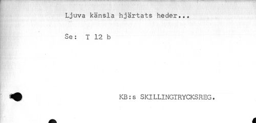 //// Ljuva känsla hjärtats heder... //// Se: I 12 b //// . //// . . . ' . //// ^ KB:s SKILLINGTRYCKSREG. ////