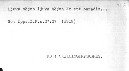 //// Ljuva nöjen ljuva nöjen är ett paradis... //// ^ f //// ] //// Se: Upps.Z.P.s.27:37 (1818) //// KB:s SKlLLINGIRYCKSREG. ////