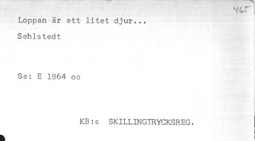 //// Loppan är ett litet djur... //// Sehlstedt //// Se: E 1864 oo //// KB :s SKILLINGTRYCKSREG. //// i //// h i ////