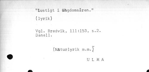 //// "lustigt i Éhgdomsåren." //// (lyrik) //// ***''. v- //// Vgl. Bredvik, 111:153, s*2. //// Danell. //// . //// (NÅturlyrik m.m.) //// ^ U L M A ////