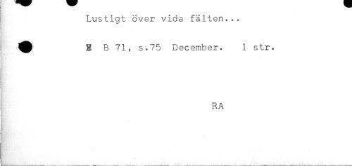 //// Lustiat över vida fälten... //// X B 71, s.75 December. 1 str. //// r //// ! //// RA //// < //// HY'* ' //// ! ////