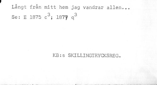 //// Långt fran mitt hem jag vandrar allén... //// Se: E 1875 c^; 187^ q^ //// KB:s SKILLINGTRYCKSREG. ////