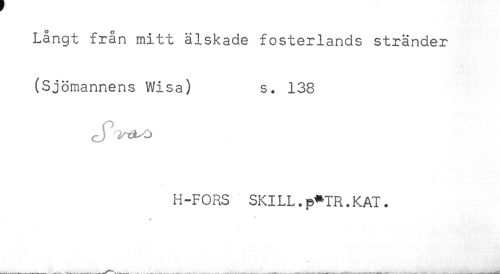 //// Långt från mitt älskade fosterlands stränder //// (Sjömannens Wisa) s. 138 //// H-FORS SKILL.p*IR.KAI. //// < ////