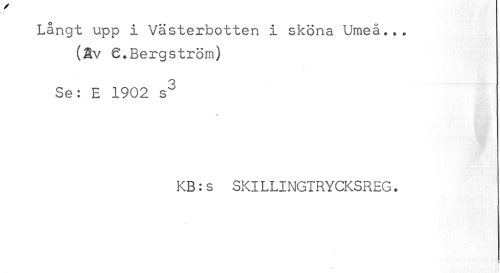 //// Långt upp i Västerbotten i sköna Umeå... //// (Sv 6.Bergström) //// Se: E 1902 s^ //// * ' .. .É //// KB:s SKILLINGTRYCKSREG. ////