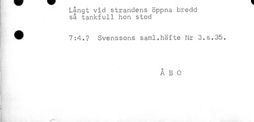 //// Långt vid strandens öppna bredd //// så tankfull hon stod //// ^ 7:4.? Svenssons saml.häfte Nr 3.S.35. //// j //// ÅBO ////