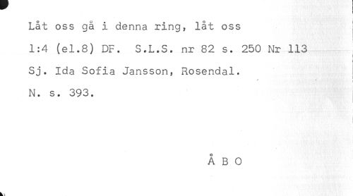 //// Låt oss gä i denna ring, låt oss //// 1:4 (el.8) DF. S.L.S. nr 82 s. 250 Nr 113 //// ) //// Sj. Ida Sofia Jansson, Rosendal. //// ' ' ! //// N. s. 393. ////