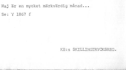 //// Maj är en mycket märkvärdig månad... //// Se: Y 1867 f //// KB:s SKILLINGTRYCKSREG. ////