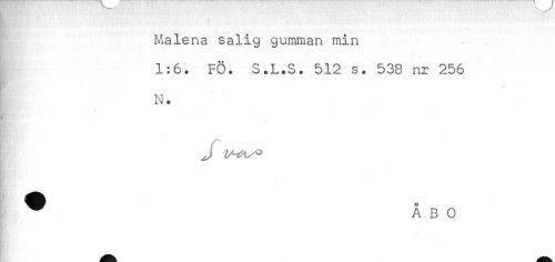//// . ' //// Malena salig gumman min //// 1:6. FÖ. S.L.S. 512 s. 538 nr 256 //// - //// HB' //// N. //// - //// * //// . ÅBO //// BP-'-' ////