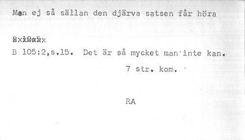 //// Man ej så sällan den djärva satsen får höra //// BxMa&x //// B 105:2,s.15. Det är så mycket man'inte kan. //// i //// ! //// 7 str. kom. ^ //// RA ////