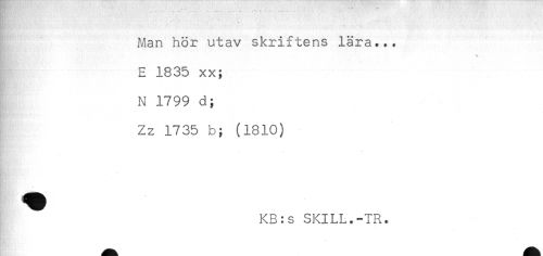 //// [ Man hör utav skriftens lära... //// } E 1835 xx; //// } N 1799 d; //// Zz 1735 b; (1810) //// KB:s SKILL.-TR. ////
