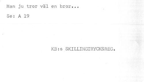 //// Man ju tror väl en bror... //// Se: A 19 //// KB:s SKILLINGTRYCKSREG. ////