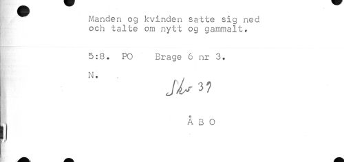 //// Manden og kvinden satte sig ned //// och talte om nytt og gammalt, //// 5:8. PO Brage 6 nr 3. //// N. , //// ÅBO ////