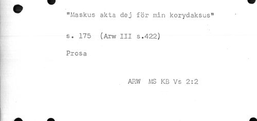 //// "Maskus akta dej för min korydaksus" //// s. 175 (Arw III s.422) //// Prosa //// ARW MS KB Vs 2:2 //// t ////