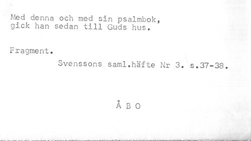 //// Med denna och med sin psalmbok, //// gick han sedan till Guds hus. //// Fragment. //// Svenssons saml.häfte Nr 3. s.37-38. //// ÅBO ////