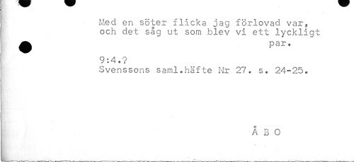//// Med en söter flicka jag förlovad var, //// och det såg ut som blev vi ett lyckligt //// ^ 9:4.? //// Svenssons saml.häfte Nr 27. s. 24-25. //// i //// a //// % //// ( //// ' //// ÅBO //// Hh-t'- ^ //// ^___ , ////