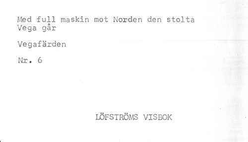 //// Med full maskin mot Norden den stolta //// Vega går //// Vegafärden //// Nr. 6 //// LÖFSTRÖMS VISBOK ////
