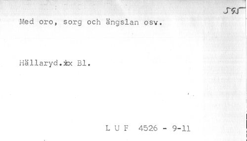 //// Med oro, sorg och ängslan osv. //// . //// Hällaryd.ix Bl, //// i ^ ; //// < //// t //// t //// L U F 4526 - 9-11 ////