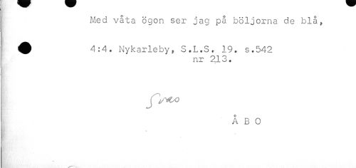//// Med våta ögon ser jag på böljorna de blå, //// ^ 4:4. Nykarleby, S.L.S. 19. s.542 //// nr 2,13. //// i ÅBO ////