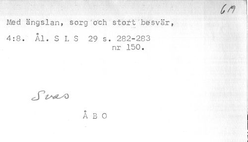 //// Med ängslan, sorg och stoft besvär, //// 4:8. Ål. S L S 29 s. 282-283 //// nr 150. ////
