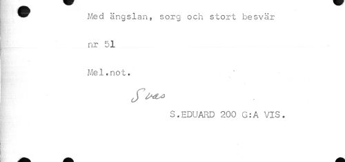 //// ^^ Med ängslan, sorg och stort besvär //// nr 51 //// Mel.not, //// Jl^ //// S.EDUARD 200 G:A VIS. //// H* //// i . ////