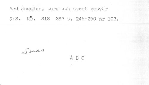 //// Med ängslan, sorg och stort besvär //// 9:8, KÖ. SLS 383 s. 246-250 nr 103. //// i //// ÅBO //// < ////