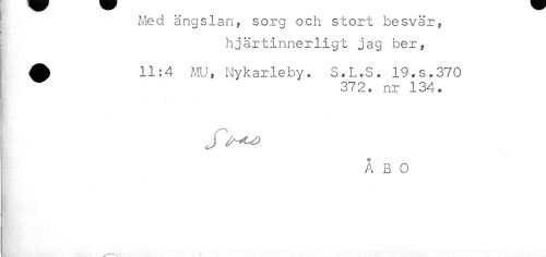 //// ! Med ängslan, sorg och stort besvär, //// hjärtinnerligt jag ber, //// ^ 11:4 MU, Nykarleby. S.L.S. 19.s.370 //// 372. nr 134. //// J //// Å B O ////