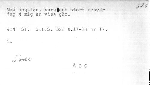 //// Med ängslan, sorg§och stort besvär //// jag # mig en visa gör. //// 9:4 SI. S.L.S. 328 s.17-18 nr 17. //// i //// * //// N. //// J //// ÅBO //// i ////