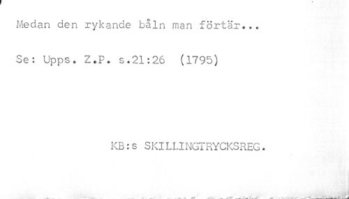 //// Medan den rykande båln man förtär... //// Se: Upps. Z.P. s.21:26 (1795) //// KB:s SKILLINGIRYCKSREG. //// .. ^ ^ .....- - . - .... ^ . ////
