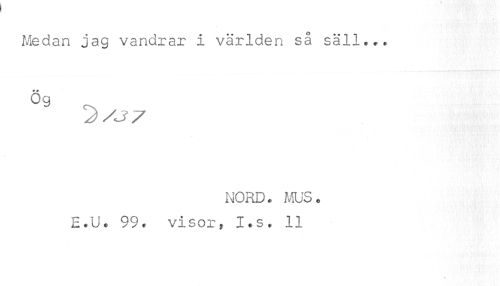 //// Medan jag vandrar i världen så säll*** //// + + //// Og //// NORD. MUS. //// E.U. 99. visor, I.s. 11 ////