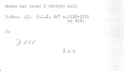//// Medan man lever i världen sall //// 3:3+r. Hl. S.L.S. 367 s.1120-1121 //// nr 419. //// N. //// ÅBO //// k ////