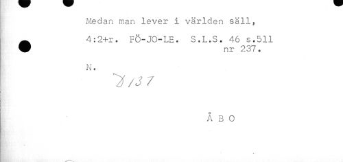 //// Medan man lever i världen säll, //// ^ 4:2+r. FÖ-JO-LE. S.L.S. 46 s.511 //// N. //// j //// t //// ÅBO ////
