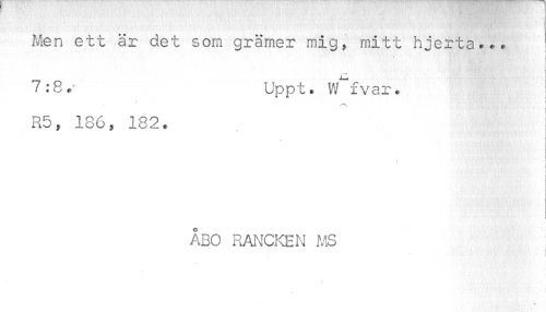 //// Men ett är det som grämer mig, mitt hjerta?** //// r //// 7:8. Uppt. W^fvar. //// ! //// R5, 186, 182. //// i //// ÅBO RANCKEN MS //// ] //// < < ////