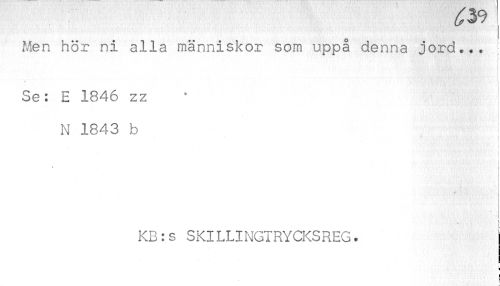 //// Men hör ni alla människor som uppå denna jord... j //// . I //// Se: E 1846 zz ' ! //// N 1843 b //// " ' .. . ' ! //// . - ' ' : ' " i //// < //// t //// * //// i //// KB:s SKILLINGIRYCKSREG. ////