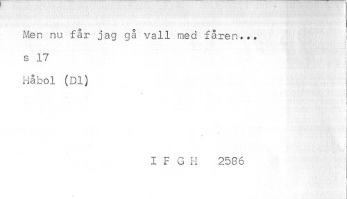 //// Men nu får jag gå vall med fåren... ! //// f //// s 17 //// Håbol (Dl) //// I F G H 2586 ////