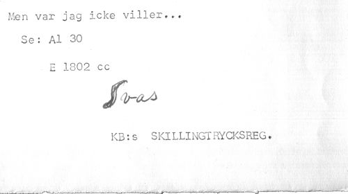 //// Men var jag icke viller... //// Se: Al 30 //// E 1802 cc //// KB: s SKILLINGT RfCKSHEG. ////