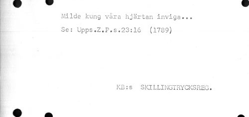 //// Milde kung våra hjärtan inviga».• Se: Upps.Z.P.s.23:16 (1789) //// o //// A. V f ii" i //// KB:s SKlLLINGT RYCKSREG. //// ^ W ¦ ¦ m Wk ////