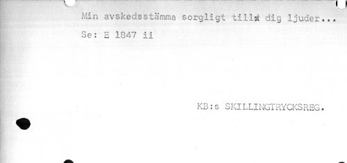 //// K Min avskedsstämma sorgligt tillät dig ljuder... //// - //// Se: E 1847 ii //// » ' «: < //// //// /HK' ¦ ¦ //// / KB: s S Kl L LI NGT RYCKS REG. //// - ////