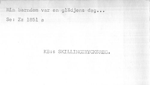 //// Min barndom var en glädjens dag... //// t ' . ; '¦:< • .• /. 7''... ; ! //// Se: Zz 1351 a //// i //// KB:s SKILLINGTRYCKSREG. //// ¦ ////
