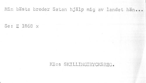 //// Min bästa broder Satan hjälp mig av landet hän».. Se: E 1868 x //// KB:s SKILLINGTRYCKSREG. //// k ////