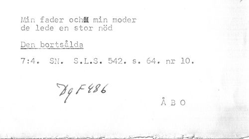 //// Min fader ochä min moder de lede en stor nöd //// Den bor t s a Ida //// 7:4» SN. S.L.S. 542, s. 64, nr 10. //// a fM //// ' ÅBO //// _____.^-_____^___--___j--------___--___ ////