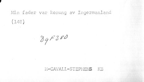 //// Min fader var konung av Ingermanland //// (148) //// * //// H-CAVALL-STEPHENS KB ////