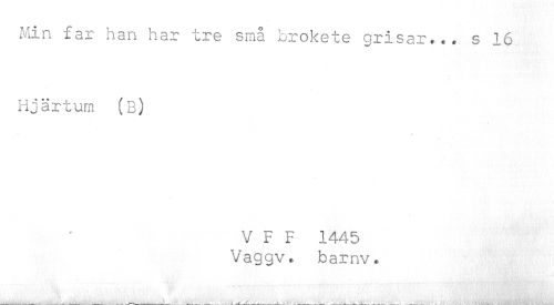 //// Min far han har tre små brokete grisar... s 16 Hjärtum (b) //// V F F 1445 Vaggv. barnv. ////