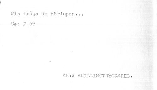 //// o //// Min fråga är förlupen... Se; P 55 //// KB:S SKILLINGTRYCKSREG. ////