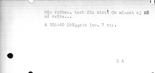 //// ¦ //// [: Min fröken9 tack för sistl Om minnet ej Kk //// må svika ? .. //// A 326:40 Skäggets lov. 7 str. //// i //// i R A ////