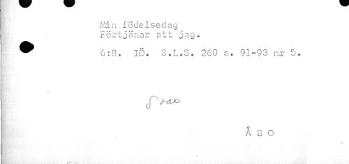 //// I Min födelsedag //// Förtjänar att jag» //// ^ 6:8. IÖ. S.L.S. 260 s. 91-93 nr 5. //// i cP //// ÅBO ////