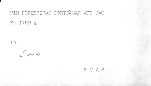 //// MIN FÖDELSEDAG FÖRTJÄNAR ATT JAG Zz 1759 a //// 15 //// S //// S V A S //// « ////